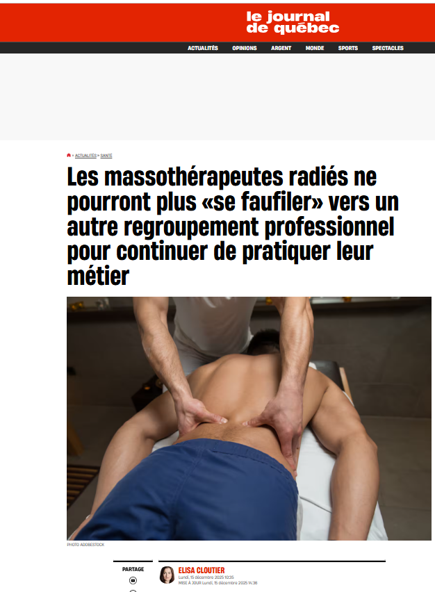 au Québec, des Associations en massothérapie s'unissent pour changer les choses !